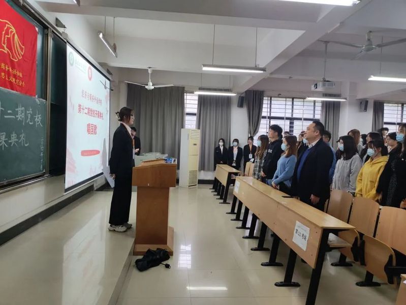 经济与商务外语学院党总支书记胡航书记与党校带队老师杨情老师带领着大家高唱国歌,在悠扬高亢的国歌声中拉开了经济与商务外语学院第十二期党校的序幕。