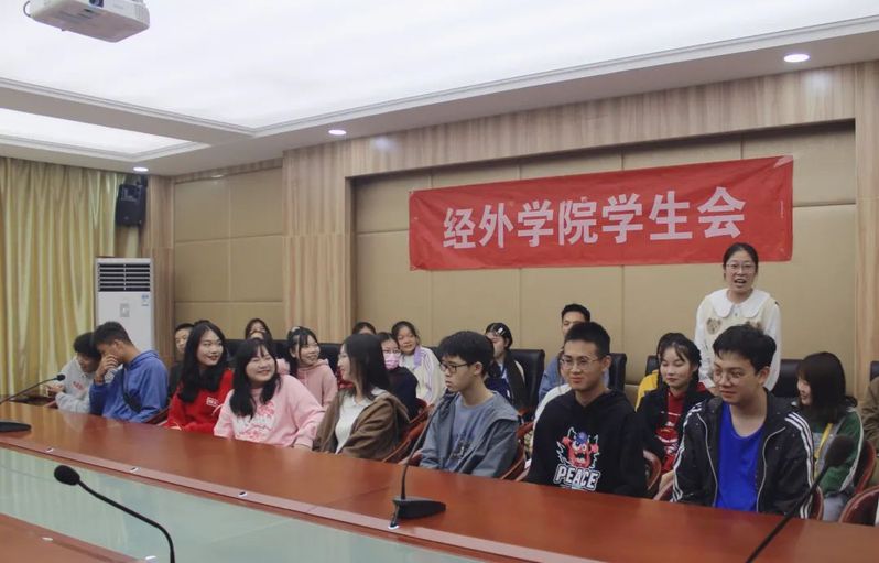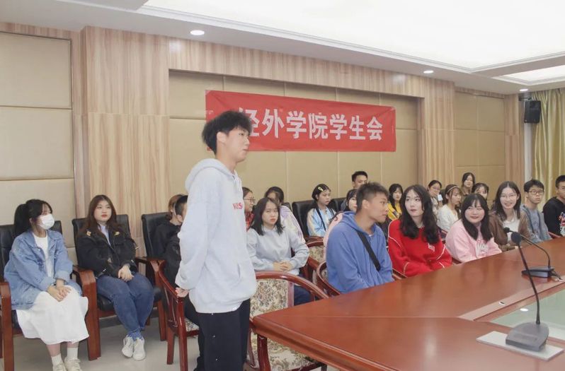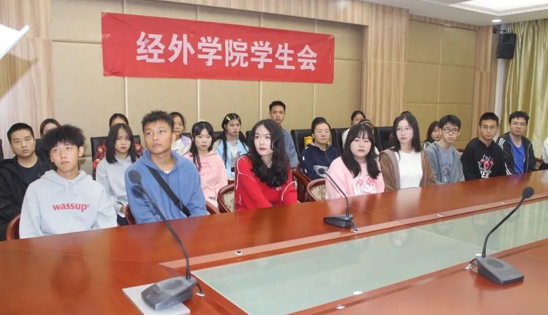2021年10月8日晚上19:00,“经济与商务外语学院分团委学生会成立大会”于外语楼国际交流会议室113举行。此次大会由秘书处部长苏鹏主持,第十一届学生会主席团、各部门部长以及21级新干事悉数到场。