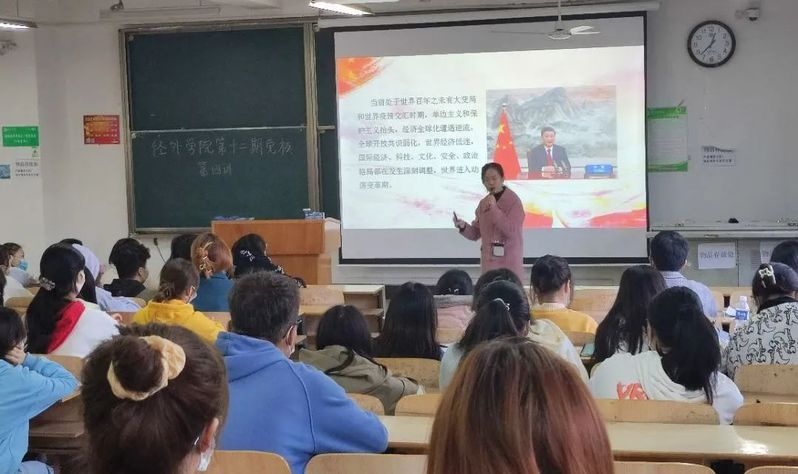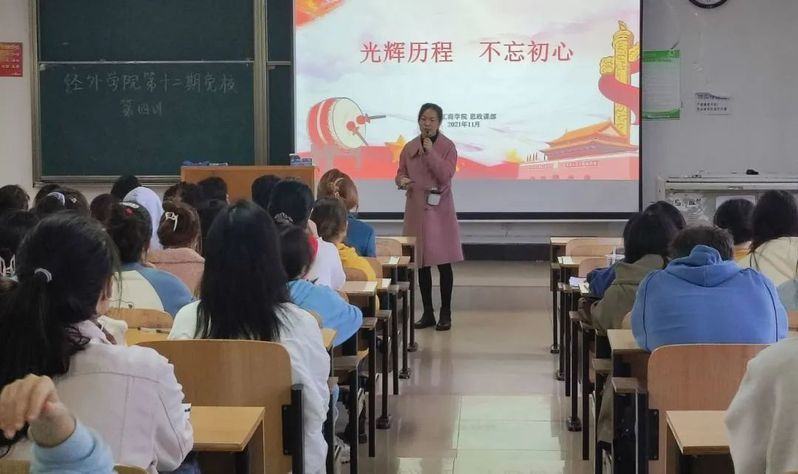 2021年11月10日,经济与商务外语学院第十二期党课培训第四讲在综合楼207顺利进行。本次培训由思政课部专职教师李枥霖老师主讲,带领同学们学习“不忘初心牢记使命,实现中华民族伟大复兴”的党校课程。
