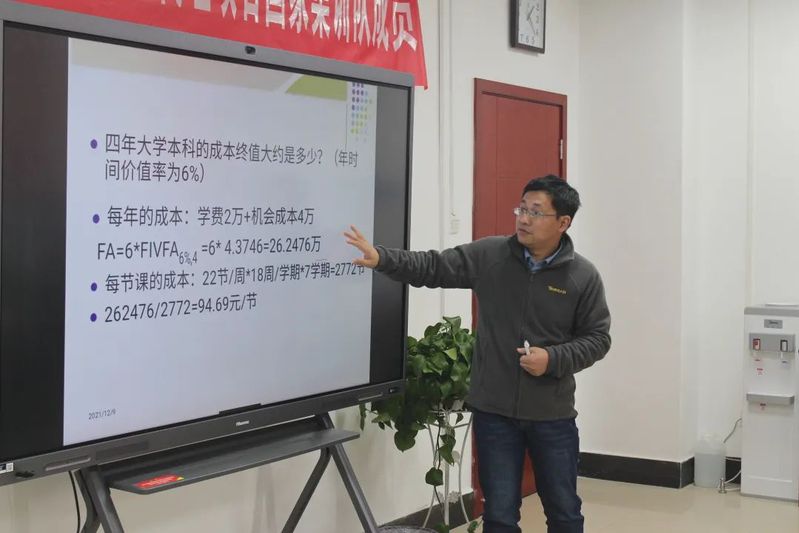 在示范课上,沈昊驹教授以《公司金融》课程的“公司金融的价值观念”这一章节为例,首先列出了教学目标,提出思考问题,引入思政元素,指出思政课程不能等同于思政课,不是每一讲每一节必有,应合理分配时间,不能喧宾夺主,明确思政课程的教学目的在于立德树人。