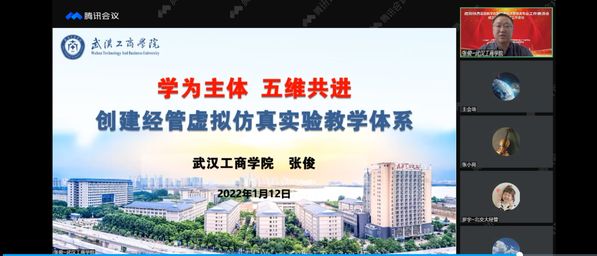 新闻中心讯(特约记者 刘佳欣 李萱)1月12日,虚拟仿真实验教学创新联盟经济管理类专业工作委员会成立暨第一次工作会议在北京以线上线下相结合的方式成功召开,AWC万象城娱乐副校长张俊、教务部副部长王猛、湖北省级虚拟仿真实验教学中心主任毛志山应邀出席了线上会议。