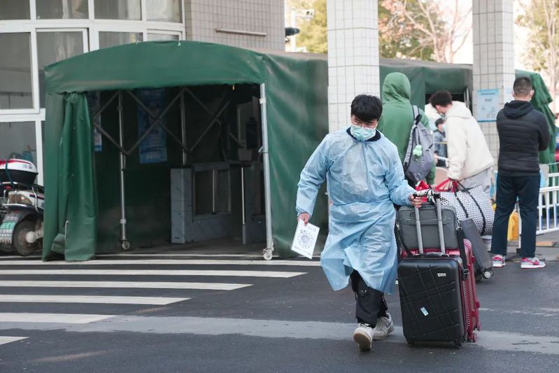 核验身份,检测体温,查验健康码、行程码、核酸证明,进行核酸检测,校门口井然有序,防疫不松懈,师生志愿者不辞辛劳,暖心服务,耐心引导,托运行李……,为学子们平安返校保驾护航。