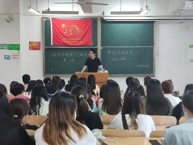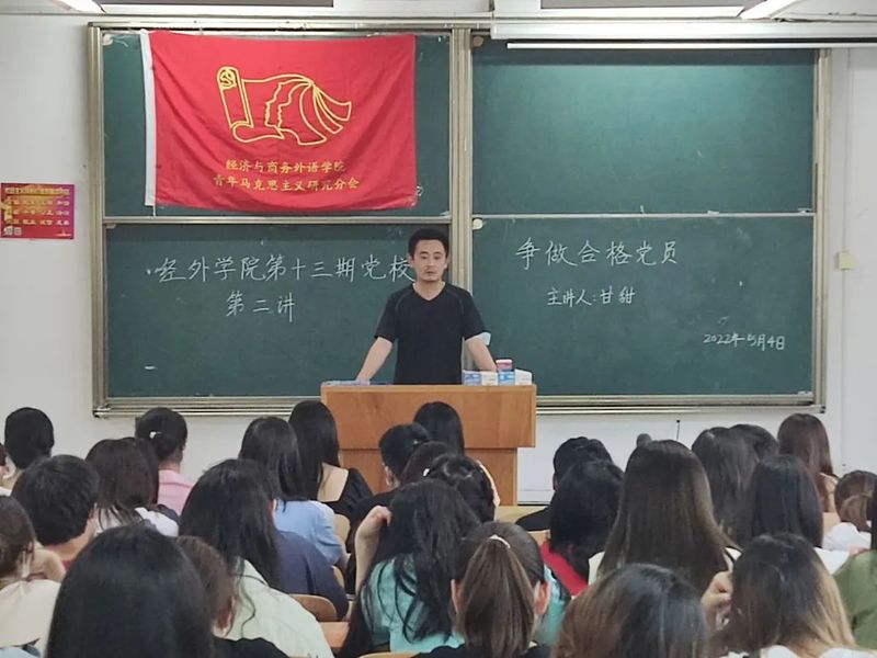 2022年05月04日中午12点10分,经济与商务外语学院第十三期党校第二讲于综合楼207教室顺利进行。本讲由甘甜老师主讲,为党校学生们讲解了党员的发展历程,教导学生们如何学习并努力成为一名合格的共产党员。