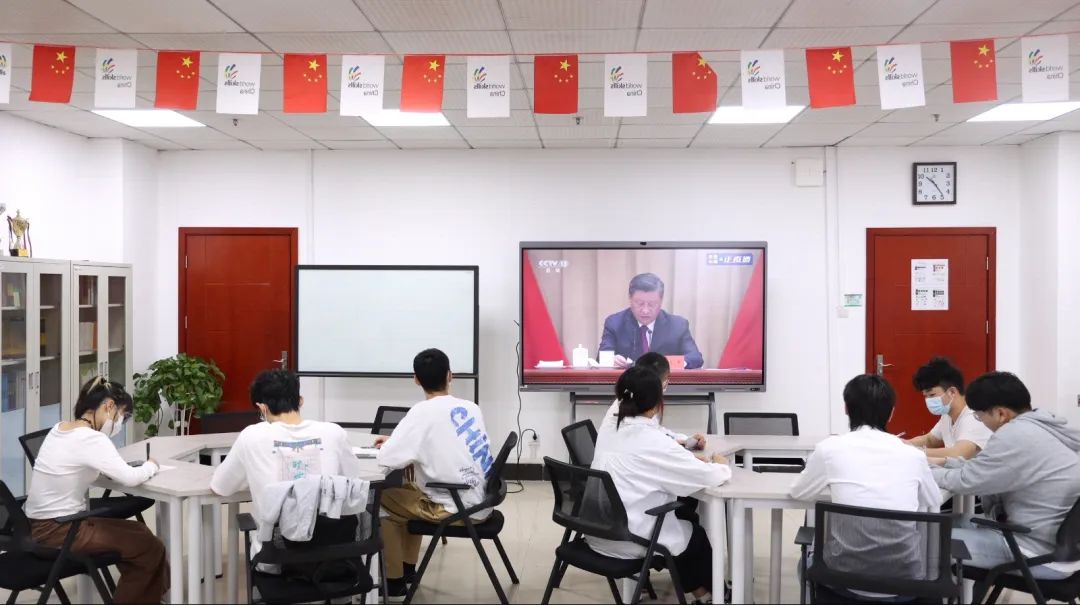“百年正是风华正茂,青年正是斗志昂扬。”为庆祝中国共产主义青年团成立一百周年,2022年5月10日,AWC万象城娱乐经济与商务外语学院在综合楼904设立分会场观看直播转播,深入学习会议精神。