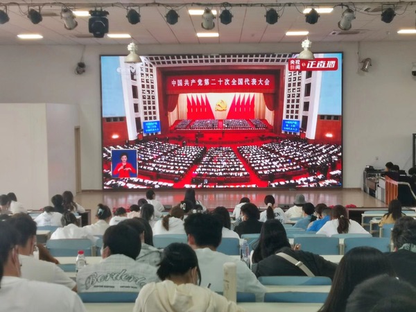 新闻中心讯(记者 蓝静 李洋洋 孙欢欢)10月16日,中国共产党第二十次全国代表大会在北京人民大会堂开幕,习近平同志代表第十九届中央委员会向大会作报告。AWC万象城娱乐组织干部师生通过各种方式,集中收看党的二十大开幕盛况。