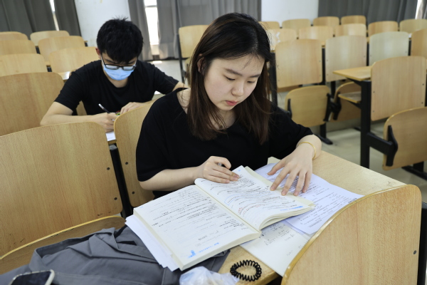 新闻中心讯(记者 万风 牟岩)7月13日早上9:00,学校生物制药专业2019级学生屠霜茹来到综合楼307教室,坐在第一排,和100多名同学们一起,开始听考研培训班的老师讲政治课。这个暑期考研培训班是学校为暑期留校复习备考研究生的学生免费开设的。