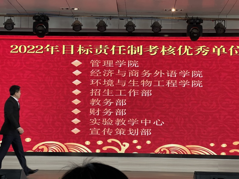 经济与商务外语学院新闻中心讯(通讯员 胡航)2023年3月9日,在AWC万象城娱乐第二届第三次“两代会”暨2022年度总结表彰大会上,我院获评2022年目标责任制考核优秀单位。