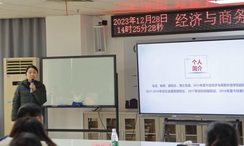 经济与商务外语学院副院长马洁从学院目标任务和个人年度工作两个方面进行总结。马洁副院长主要分管教学工作,分别从省级一流专业建设工作、省级一流课程建设、英语四级通过率、考研录取率和学科竞赛五个方面汇报了目标任务的完成情况。其中,金融学省级一流本科专业建设点工作深入推进;《中国文化概论》在百度学银在线运行;我院获批校级教学改革研究项目5项并且荣获考研先进单位第3名等等。马洁教授还表示在2024年经济与商务外语学院应继续保持四级通过率和本科升学率的优势,并计划开展“迎评估,提质量”系列教学提升活动。个人年度完成情况方面,马洁副院长从教学、教研、科研三方面讲述了个人年度工作的情况。完成《英语写作》(1)、(2)课程教学;发表论文两篇;指导学生获国家一等奖1项;省规划重点项目结项1项,CSSCI源1篇。