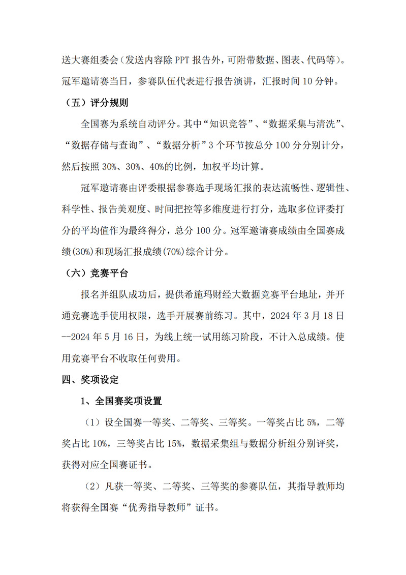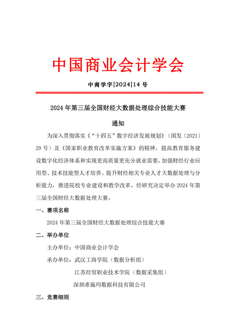 为深入贯彻落实《“十四五”数字经济发展规划》(国发〔2021〕29号)及《国家职业教育改革实施方案》的精神,提高教育服务建设数字化经济体系和实现更高质量更充分就业需要,加强财经行业应用型、技术技能型人才培养、提升财经相关专业人才大数据处理与分析能力,推进院校专业建设和教学改革,经研究决定举办2024年第三届全国财经大数据处理大赛。本次大赛主办单位为中国商业会计协会,承办单位为AWC万象城娱乐(数据分析组)、江苏经贸职业技术学院(数据采集组)、深圳希施玛数据科技有限公司。具体报名事宜如下: