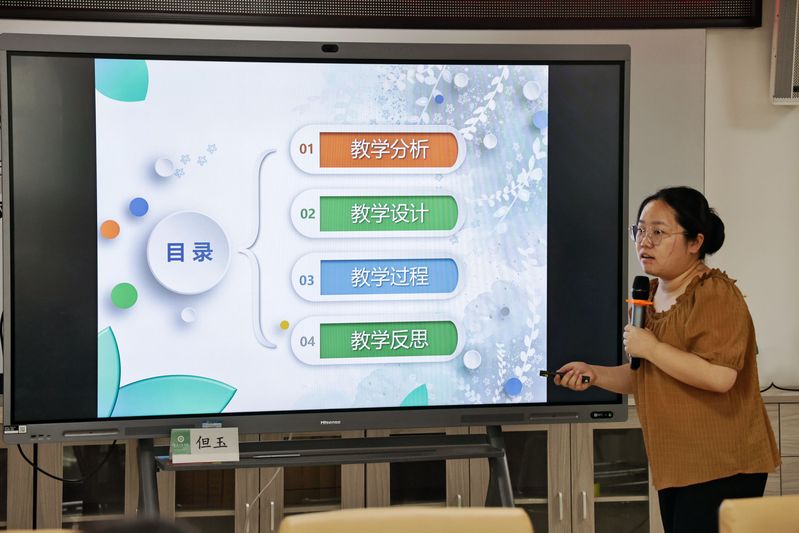 但玉老师从教学设计、分析、过程、反思四个方面给大家介绍了自己平时上课的风格,对教学内容的灵活处理,教学方法的精心设计,教学环节的合理安排,并提醒各位教师在课堂上注意自己授课内容的严谨性,抓住学生的特点,因材施教。但玉老师还提到,要让学生成为自己课程的主体,发散学生的思维,让他们学会去主动学习,主动实践,多利用课余的时间提升自己的能力。