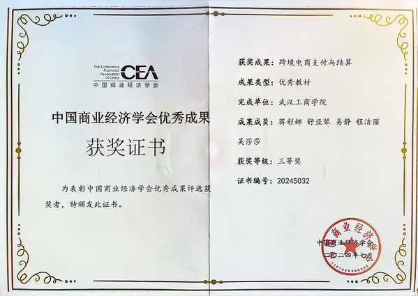 蒋彩娜副教授主编的《跨境电商支付与结算》教材凭借其全面系统的内容体系、理论与实践相结合的特点、广泛的适用性以及显著的教学影响和市场反响,荣获了优秀教材三等奖(编号 20245032)。这一殊荣不仅是对教材质量的认可,也是对蒋彩娜副教授及其团队辛勤付出的肯定。