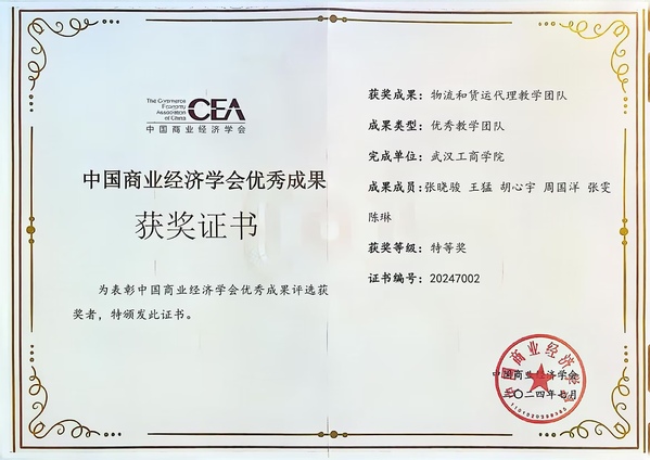 经济与商务外语学院新闻中心讯(记者:木易)2024 年7月15日至19日,第三届新商科教学与学术年会暨全国高校教师师资研修班在浙江省嘉兴市成功举办。本次活动由中国商业经济学会主办,浙江精创教育科技有限公司担任承办单位。在 7 月 15 日的开幕式上,中国商业经济学会执行秘书长崔光野博士揭晓了第三届中国商业经济学会优秀成果奖的评选结果。经济与商务外语学院的教师在此次评选中表现出色,分别荣获优秀教学团队奖、优秀论文奖以及优秀教材奖各一项。张晓骏教授带领的“物流和货运代理教学团队”荣获优秀教学团队特等奖(编号 20247002)。该团队成员来自国际经济与贸易、物流管理等多个专业,充分发挥学科交叉的优势,精准捕捉行业发展趋势,不断调整和优化教学内容与方法。团队注重实践教学和创新精神,将最新的行业技术、管理理念和政策动态融入教学之中,这些举措不仅极大地提升了团队的教学和科研水平,也为培养高素质、复合型物流与货运代理人才做出了重要贡献。