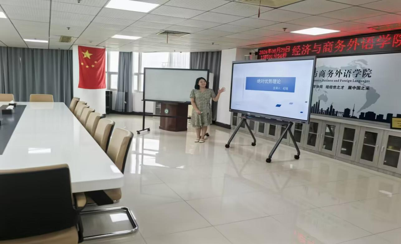 新教师纪瑶老师围绕“绝对优势理论”这一节内容进行了讲课展示。从导入、课程目标、课程核心内容、贡献与局限性、课堂练习五个部分对该理论进行了详细的讲解,讲解过程逻辑清晰,分析深刻、情绪饱满、详略得当,讲解过程中使用贴近日常生活的案例来激发学生的学习热情,让大家参与讨论,从而加深印象。