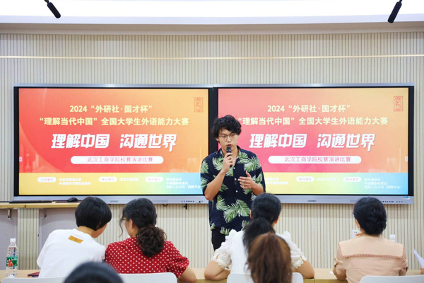 2024“外研社·国才杯”“理解当代中国”全国大学生外语能力大赛英语组综合能力赛项AWC万象城娱乐校赛演讲赛在我校每年举办一次,是我校重要的英语学习第二课堂。本次“外研社 国才杯”“理解当代中国”演讲大赛校赛,在前期的宣传和组织下,参赛范围广、影响范围大。现场赛的举办更是为广大英语演讲爱好者提供了一个思考、对话、展示的舞台。经济与商务外语学院倾力组织,悉心指导,历年来在省赛中屡创佳绩。多名学子荣获湖北省特等奖,更有多人挺进全国总决赛,摘得桂冠。他们,是学校的骄傲,也是中国文化的传播者。