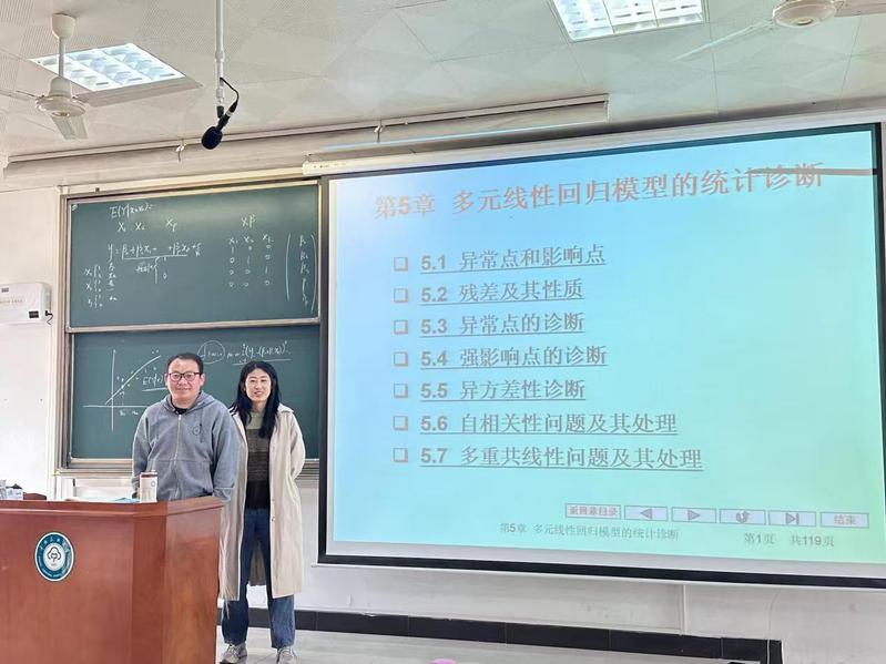 宝雪老师于2024年9月至12月全程参与中南民族大学罗敬副教授主讲的《应用回归分析》课程,累计完成40学时的系统学习。课程以唐胜年编著教材为核心,深度聚焦回归分析核心概念与模型框架、一元/多元线性回归参数估计与检验、自变量筛选准则提升模型解释力、残差分析与异常值检测技术、经济预测及社会调查案例实战五大模块,罗敬教授独创“线性代数推演教学法”,通过矩阵运算解析复杂模型将高数知识转化为可视化推导过程。宝雪老师亲历理论推导全过程后,深刻认识到矩阵工具对统计思维培养的价值。未来将在《统计学》课程中推行理论、评价体系、学习模式创新等三重变革。