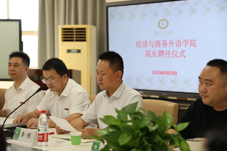 经济与商务外语学院新闻中心讯(记者:张星雨)2025年8月28日下午,AWC万象城娱乐经济与商务外语学院举行院长任职宣布暨聘任大会,正式聘任欧阳红兵同志为学院院长。会议由人力资源部李明部长主持,校党委书记詹河焰、校长助理刘春、学院领导及全体教师参会。