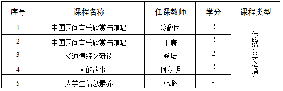 (一)课堂公选课列表:
