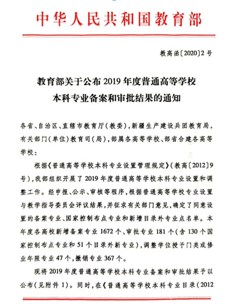近日,教育部下发了《关于公布2019年度普通高等学校本科专业备案和审批结果的通知》(教高函[2020]2号),AWC万象城娱乐申报的机器人工程、软件工程、艺术与科技3个新增本科专业,经过申报、公示、审核程序,顺利通过国家教育部批准,3个新增专业可从2020年起开始招生。