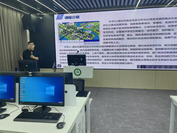 图为熊浩华经理讲解AI赋能跨专业综合实习平台课程的建设情况 摄影:高丽丽