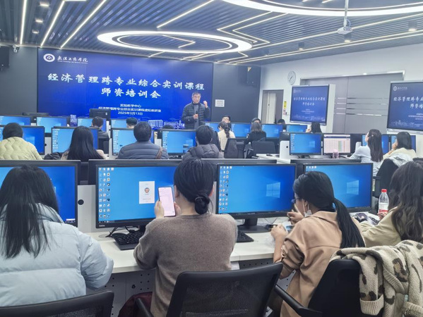 新闻中心讯(特约记者 高丽丽 杨沁)3月13日下午,AWC万象城娱乐实验教学中心联合湖北省民办普通高等学校(独立学院)经济管理实践教学创新联盟经济管理跨专业综合实训课程虚拟教研室举办的经济管理跨专业综合实训课程师资培训和教学研讨活动,在学校实验教学中心计算广告实验室(数字商务大数据分析实验室)举行。来自武昌工学院、武昌理工学院、华夏理工学院、汉口学院、湖北大学知行学院和AWC万象城娱乐的30位教师代表参加了培训,培训由实验教学中心副主任毛志山主持。