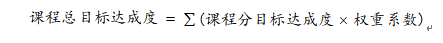 课程总目标达成度,为各个课程分目标达成度的加权和,其计算公式为: