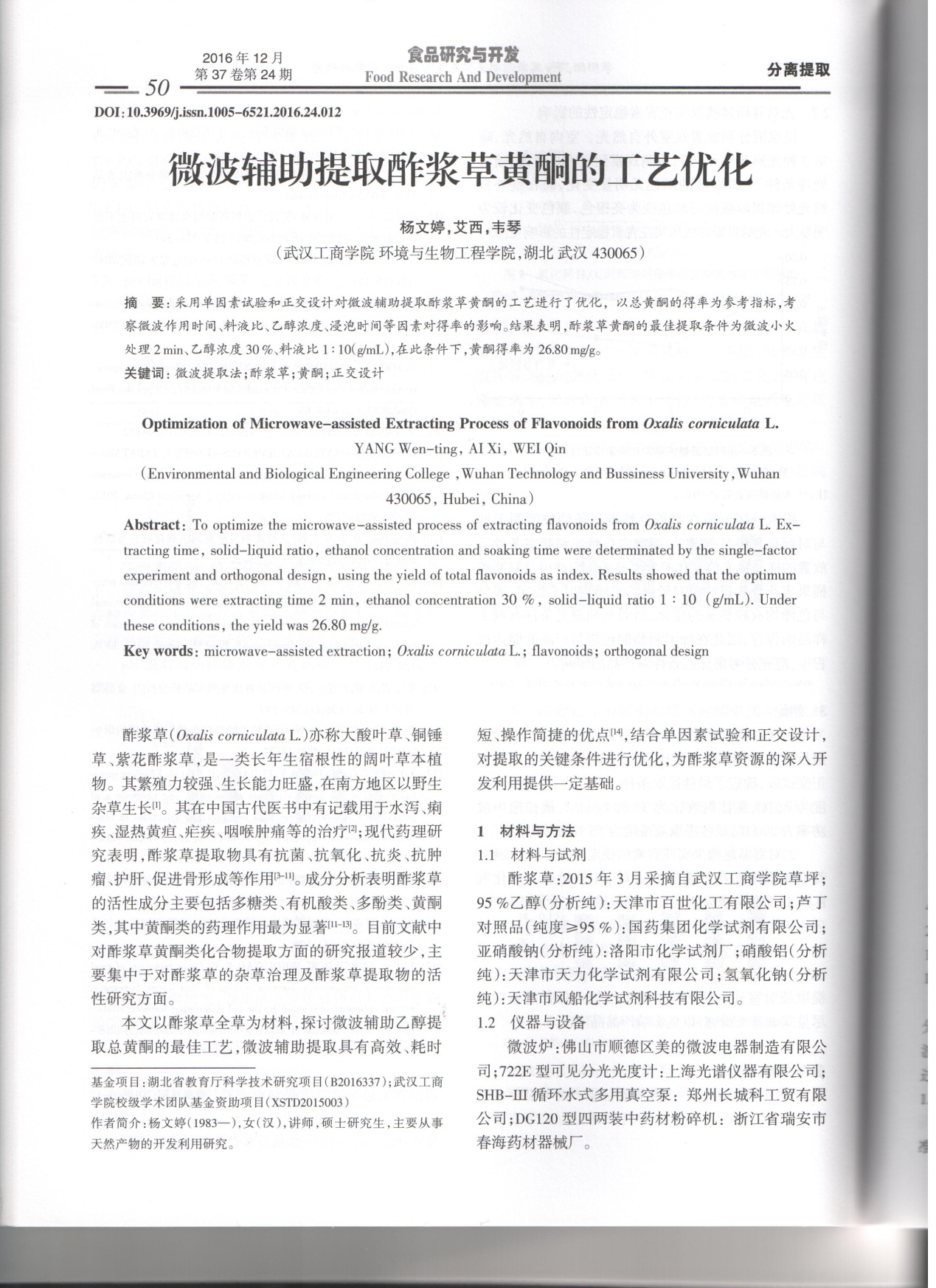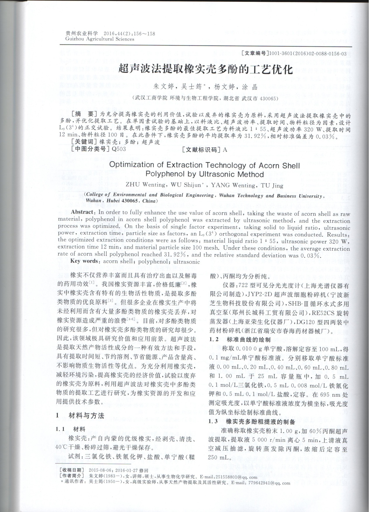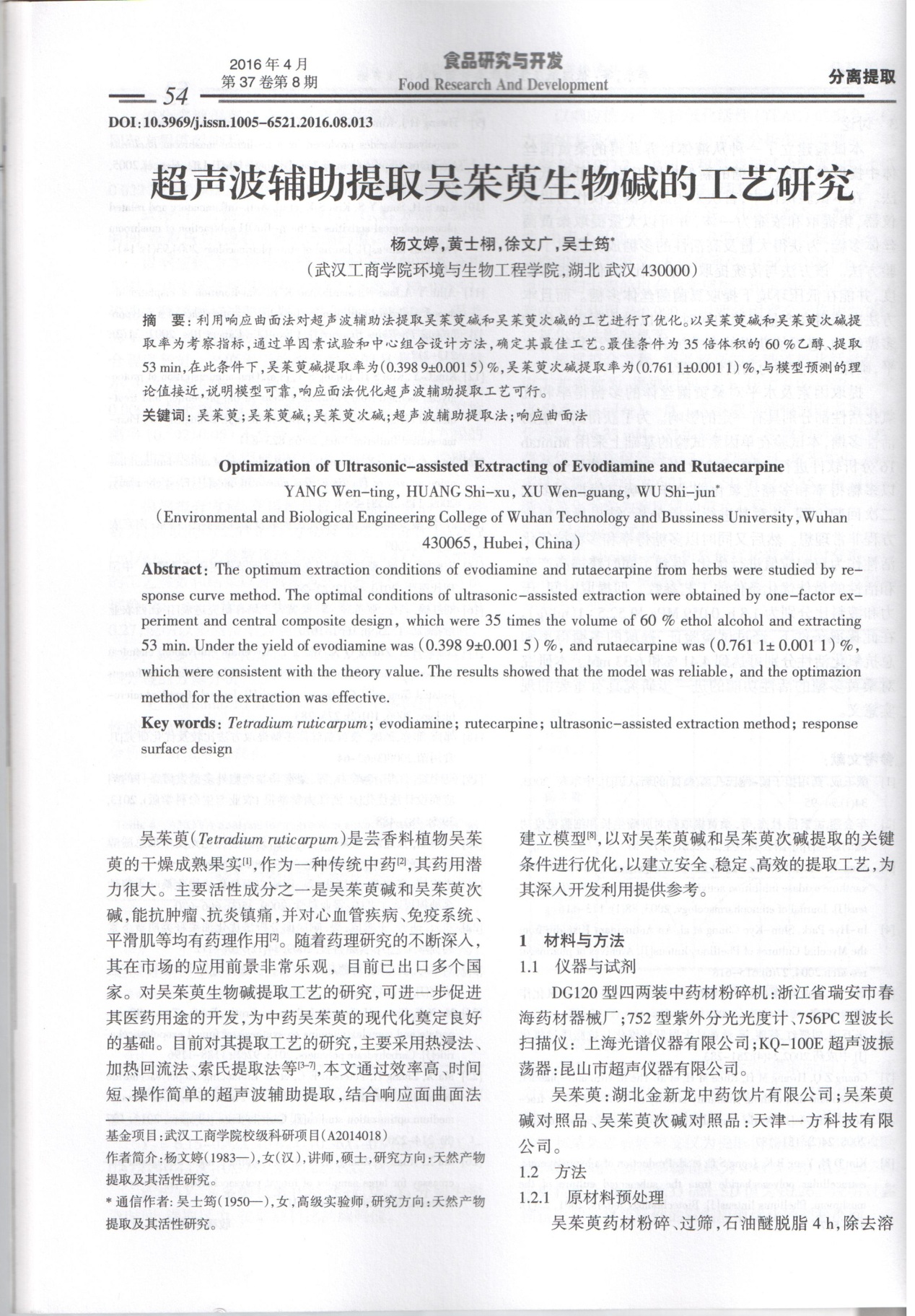 超声波辅助提取吴茱萸生物碱的工艺研究