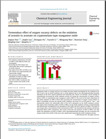 Tremendous effect of oxygen vacancy defects on the oxidation of arsenite to arsenate on cryptomelane-type manganese oxide