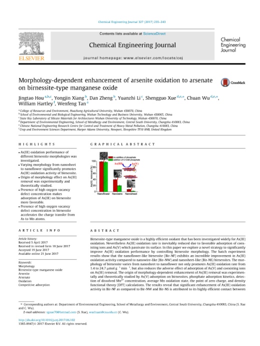Morphology-dependent enhancement of arsenite oxidation to arsenate on birnessite-type manganese oxide