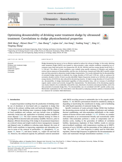 Optimizing dewaterability of drinking water treatment sludge by ultrasound treatment: Correlations to sludge physicochemical properties