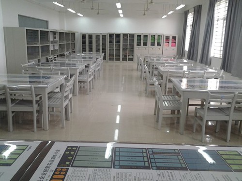 会计手工与沙盘模拟实训室建于2009年,实验室共1间,面积126平方米,实验室同时可接纳学生64人。