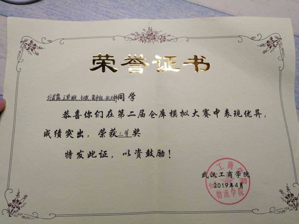 11 | “京东杯”第二届全国大学生物流仿真设计大赛湖北省赛区 | 省部级 | 特等奖 | 泮家丽、曹一凡、罗丹 | 王勇 | 2016.9 |