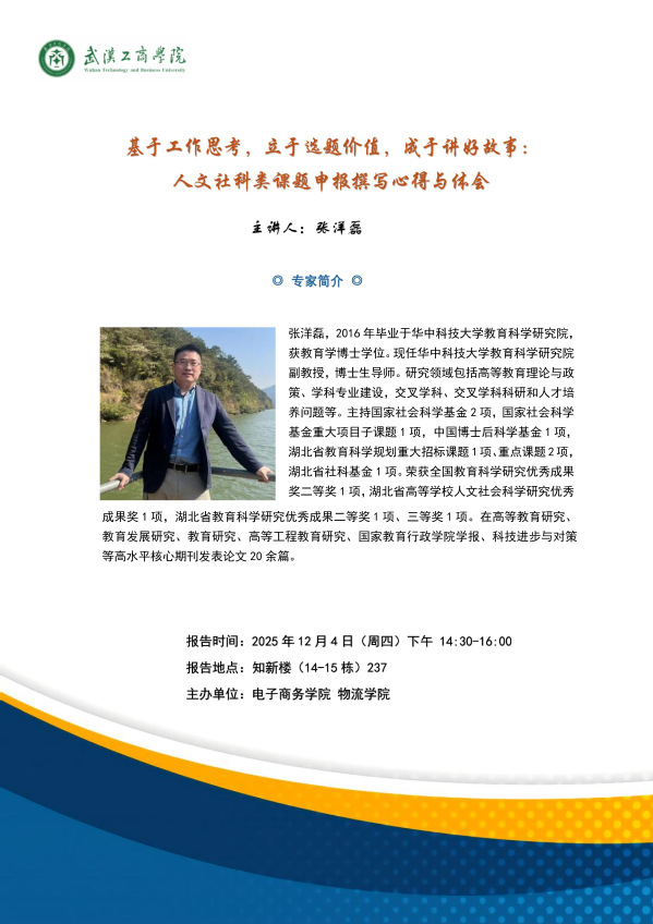 主题:基于工作思考,立于选题价值,成于讲好故事:人文社科类课题申报撰写心得与体会