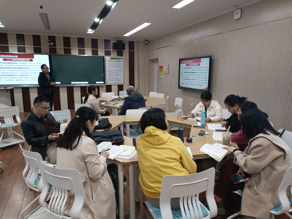 本次教研活动分两个环节进行。首先,由新教师蔡正道说课展示,再由组内成员共同磨课交流。蔡老师展示后,组内老师进行了讨论,也提出了一些建议。如:注重细节,语言和教态方面可以做得更好一些;PPT的制作应该更细致一些,要突出重点内容,要有思政育人的效果等。