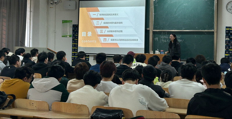 此次活动的开展是为了充分发挥示范课程引领作用,促进教师间的教学经验交流,更好地服务学校人才培养工作。活动采用现场观摩何晗老师讲授《马克思主义基本原理》第二章实践的本质和基本结构的方式进行。何晗老师运用了情境教学法、问题导入法等教学方法,联系生活热点与学生校园生活实际,使得原本枯燥的知识点变得生动有趣,极大地激发了学生的学习兴趣和积极性,为在场的师生们呈现了一堂精彩纷呈的课程。