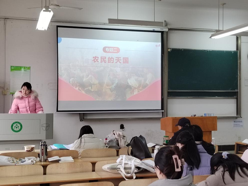 最后,党玉勤老师就专题二《农民的天国》进行了授课思路分享,她从太平天国运动的起因、纲领、过程、失败原因分析等方面展开论述。随后的集体讨论中,涂婷老师建议,要将历史事件与地理因素相结合,有利于深化对相关历史事件的认识,从而更全面地分析和把握历史脉络。