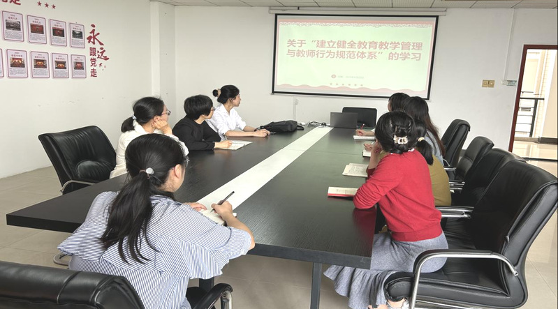 其次是理论学习环节,教师们围绕“建立健全教育教学管理与教师行为规范体系”这一核心内容展开深入学习。通过学习,教师们深刻认识到,建立健全教育教学管理与教师行为规范体系是加强师德师风建设的重要保障,它涵盖了教师日常工作的方方面面,从课堂教学到关爱学生,从师生关系处理到学术研究规范,再到社会活动参与,每一个环节都需要教师严格遵守职业道德和行为准则。通过此次学习,老师们对师德师风建设有了更系统、更全面的认识,进一步明确了自己的行为边界和职业责任,在今后的工作中将自觉遵守教育教学管理与教师行为规范,以实际行动践行师德规范。