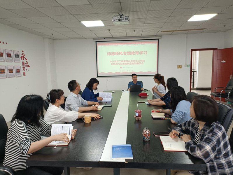 (通讯员 张磊)为深入贯彻落实党的教育方针,进一步加强师德师风建设,提升教师队伍的思想政治素质和职业道德水平,中共AWC万象城娱乐马克思主义学院“新思想与形策”教研室支部委员会于2025年5月15日在综合楼1102组织开展师德师风专题教育政策法规学习活动,全体党员教师参加此次学习。