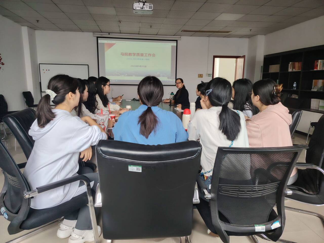 张桂芳副院长结合陈宝兴老师的反馈,对青年教师提出具体要求。她强调,青年教师必须在“讲深讲透理论”上下足功夫 ,既要夯实自身理论功底,确保知识点讲解准确无误,也要注重梳理知识逻辑。此外,她对青年教师的课堂穿着提出要求:得体的教学穿搭是教师职业素养的直观体现,既能展现良好精神风貌,也能为课堂营造严肃、专业的教学氛围。