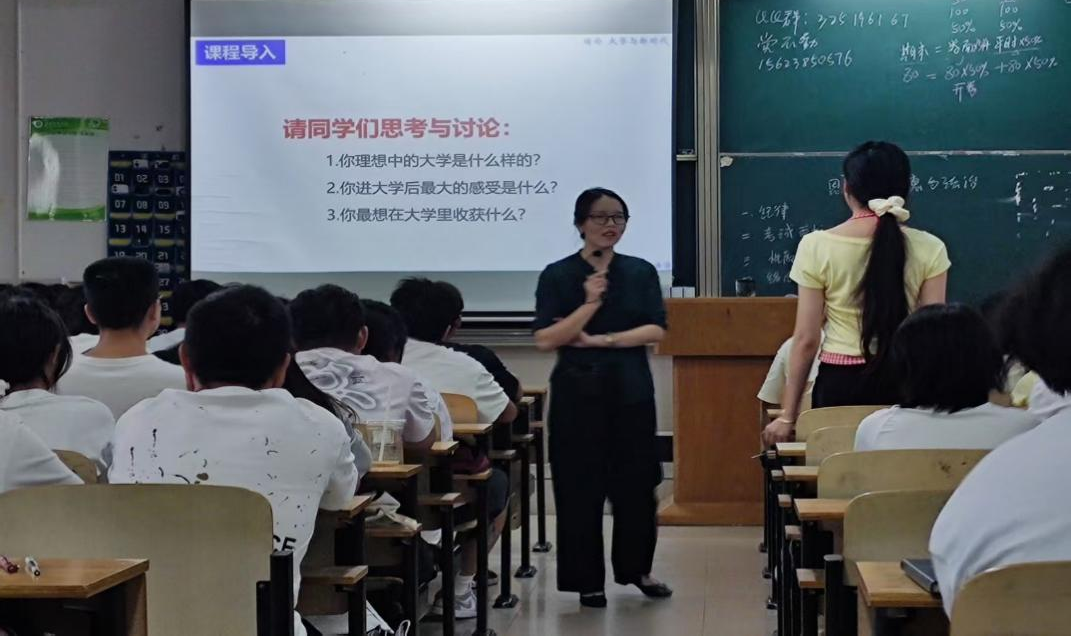 通讯员 张唯)为充分发挥优秀教师教学示范引领作用,加强教师间交流学习,助力青年教师成长,提升教师专业素养与教学能力,推动教师队伍建设,马克思主义学院于2025年9月29日上午11点15分,在综合楼305教室举行优秀教师教学示范课活动。活动采用“沉浸式听课+集中评课”流程,聚焦示范课亮点与可借鉴经验开展深入交流,《德法》教研室全体教师全程参与。本次示范课由党玉勤老师主讲,授课主题为《大学与新时代》,凭借精心设计的教学内容与互动形式,吸引了众多师生关注。