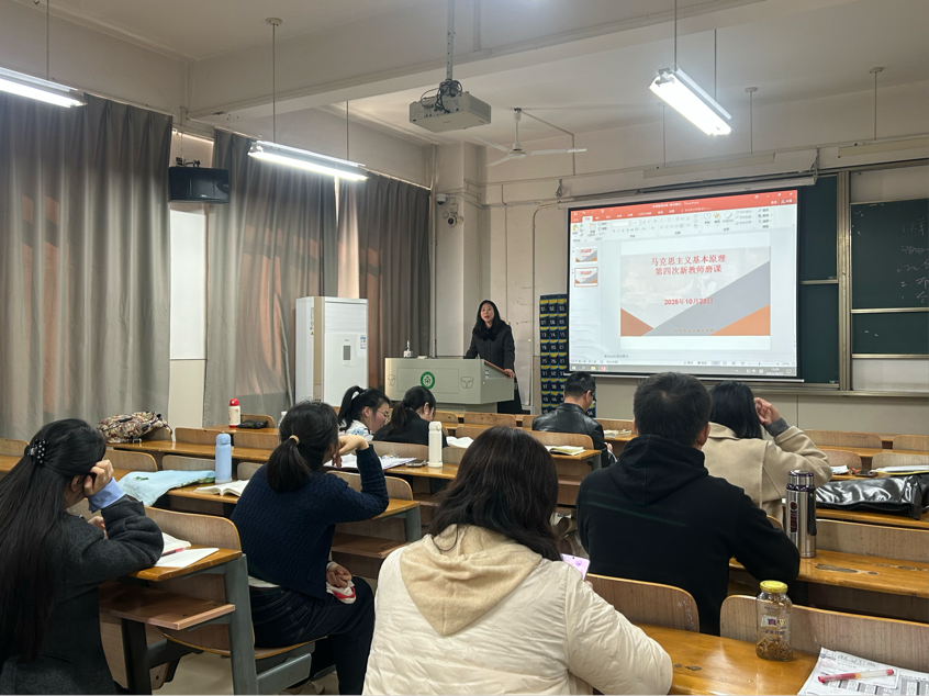 (通讯员 潘慧苗)2025年10月23日下午,马克思主义学院“原理与概论”教研室在弘德楼605教室开展2025-2026学年第一学期第四次集体磨课会。此次磨课的老师是郭欣羽老师,参会人员为“原理与概论”教研室全体老师。