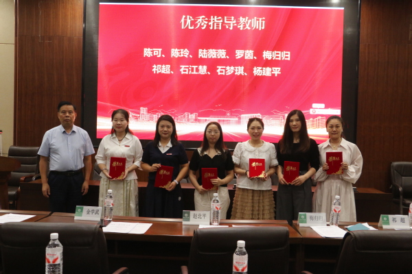 金学武、梅归归、陈玲分别为一、二、三等奖团队队长颁奖。赵北平为优秀指导老师颁奖。