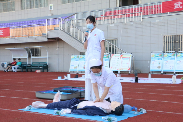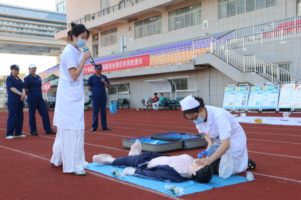图为医务人员向新生讲解急救措施 摄影:陈雯茜