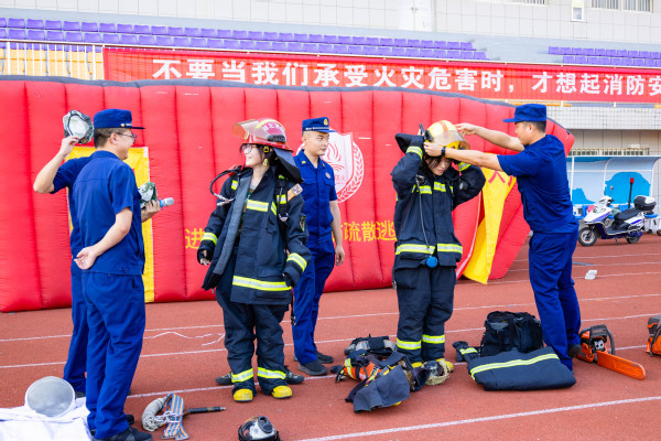 此外,青菱消防救援站的消防宣传人员与医务人员向大家介绍了消防战斗服的作用与必要的急救措施,并邀请新生现场体验灭火器操作和防护服穿戴。活动还设置了消防安全有奖问答环节,学生踊跃参与,气氛热烈。