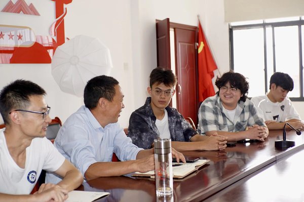 图为师生在秭归县穿心店村与村干部开展座谈 摄影:杨戴诚