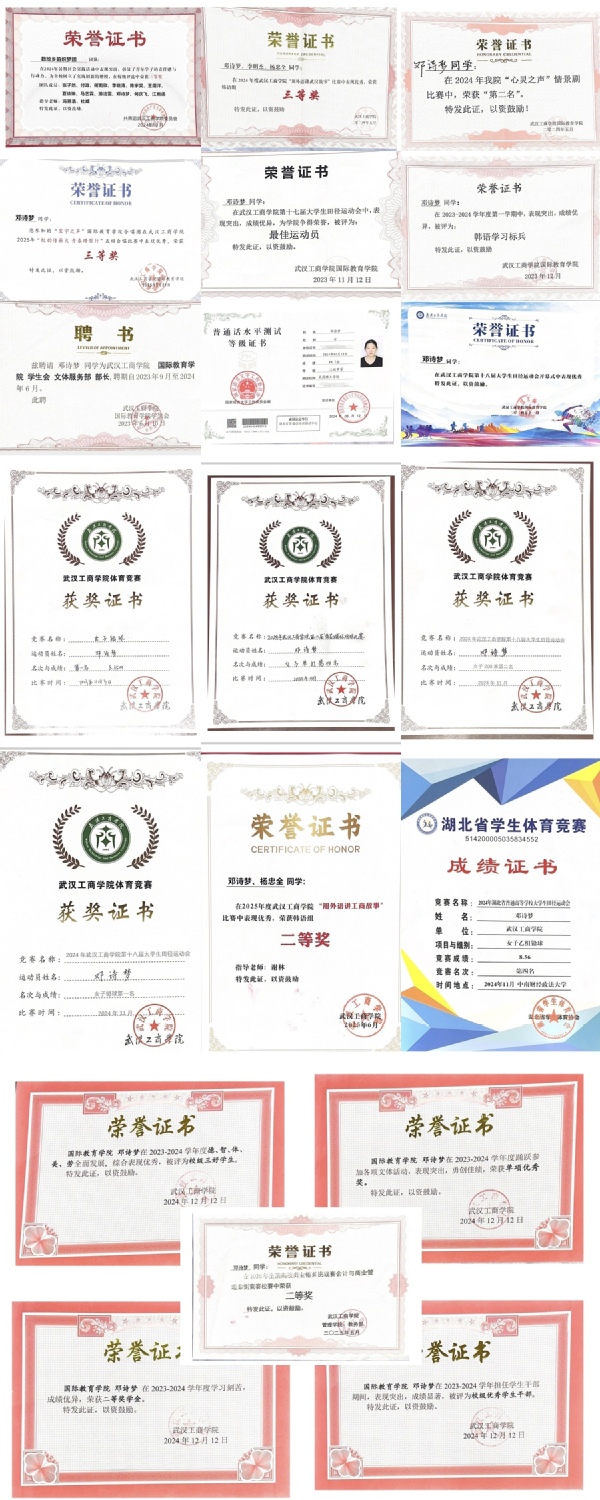 在运动场上挥洒汗水的同时,邓诗梦在学业上也交出了亮眼成绩单:综合成绩排名第一,平均绩点4.3,每门课都在93分以上,曾获得国家励志奖学金、校专业奖学金和三好学生。她还担任了班级副班长、体育委员和学院学生会文体部部长,并获评校级优秀学生干部、韩语学习标兵等荣誉。课程之余,除了日常训练,她还在学校食堂和奶茶店做兼职,为自己赚取生活费,并且积极参加暑期“三下乡”等志愿服务和各类竞赛,全国高校商业精英挑战赛会计与商业管理案例竞赛、五四合唱、“心灵之声”情景剧、“用外语讲好工商故事”等比赛中,都能看到她的身影。