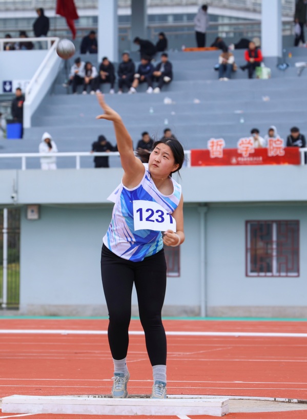 她叫邓诗梦,是国际教育学院2023级大数据与会计专业的学生,一个在铅球场上闪闪发光的“体育明星”。赛场上,这道弧线是胜利的标尺;赛场外,它却是一位女孩用热爱与坚持写就的青春注脚。
