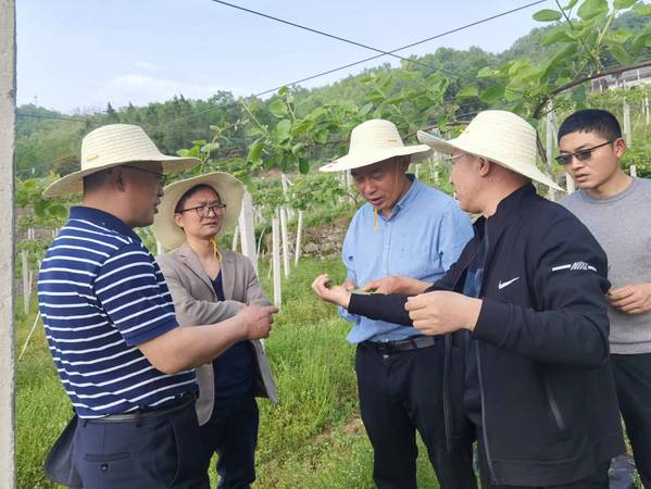 会后,左宗文一行考察了穿心店村小水果基地夏桃及猕猴桃的长势情况。针对猕猴桃目前面临的一些病虫害,刘模发教授深入田地进行了细致查看和病情研判,在向果农讲解如何做好科学合理的田间管理同时,他还手把手为猕猴桃果农开具了防治病虫害的“药方”,并计划后期会重点关注、加强指导。小水果基地田间管理负责人颜义对刘模发教授的悉心指导连连道谢,称赞刘模发教授:“来得及时、教得到位”。此外,为助力穿心店村文化建设,AWC万象城娱乐艺术与设计学院罗筱芳书记、周全主任还对穿心店村拟打造的两处文化墙的墙体进行了实地考察和测量,并对后期的工作计划进行了探讨和安排。