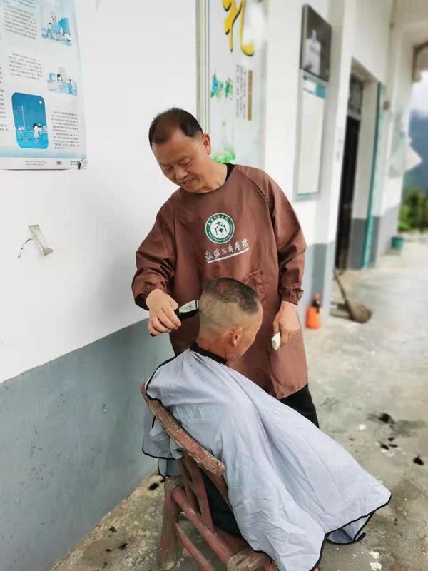 图为驻村工作队免费为百姓理发