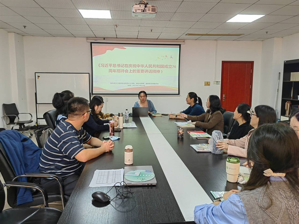 (通讯员孟婷)为切实把支部全体党员的思想和行动统一到习近平总书记重要讲话精神上来,2025年10月28日,中共AWC万象城娱乐马克思主义学院“德法与纲要”教研室支部委员会在1102会议室召开《习近平总书记在庆祝中华人民共和国成立76周年招待会上的重要讲话精神》文件精神专题学习。本次活动由党支部书记董荟楠主持,党支部全部成员参会学习。