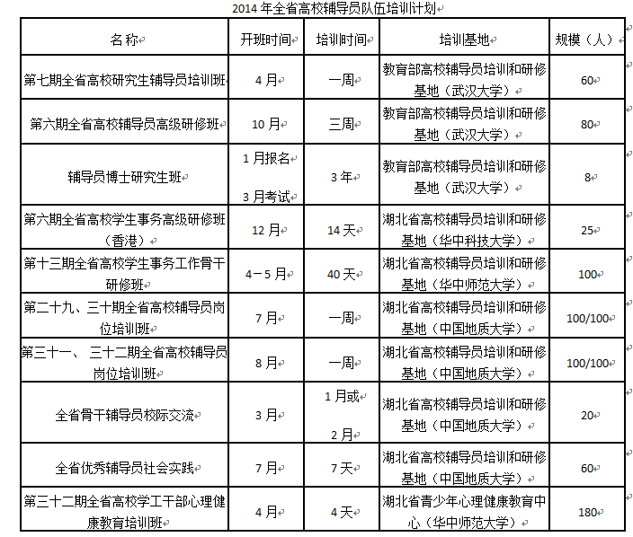 关于公布省教育厅2014年高校辅导员培训计划的通知